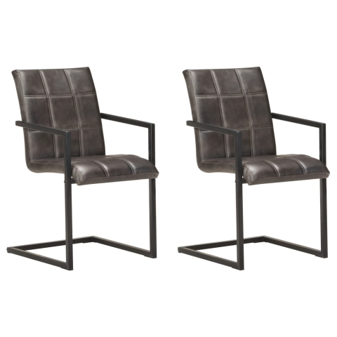 Teljes vidaXL 2 db szürke valódi bőr szánkótalpas étkezőszék termékleírás