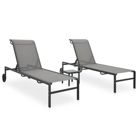 1 kép vidaXL 2 db textilén és acél napozóágy asztallal