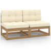 Teljes vidaXL 2 db tömör fenyőfa kerti középső kanapé krémszínű párnákkal termékleírás
