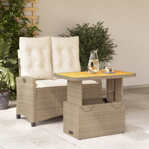 1 kép vidaXL 2 részes bézs polyrattan kerti étkezőgarnitúra párnákkal