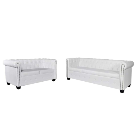 Teljes vidaXL 2 személyes és 3 személyes fehér műbőr Chesterfield kanapé termékleírás
