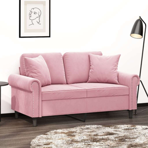 vidaXL 2 személyes rózsaszín bársony kanapé díszpárnákkal 120 cm bútor termékleírás