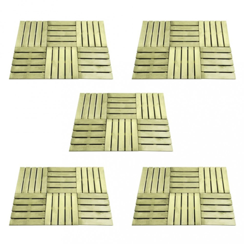 Helyezzen gyönyörű fából készült padlót kertjébe, teraszára vagy a medence mellé 30 darabos burkolólapszettünk felhasználásával. A padlólapok impregnált fenyőfából készültek, ami környezetbarát, strapabíró, időjárásálló és nem korhad. A fa gyönyörű erezet