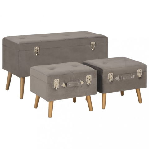 1 kép vidaXL 3 darab szürke bársony tárolóülőke