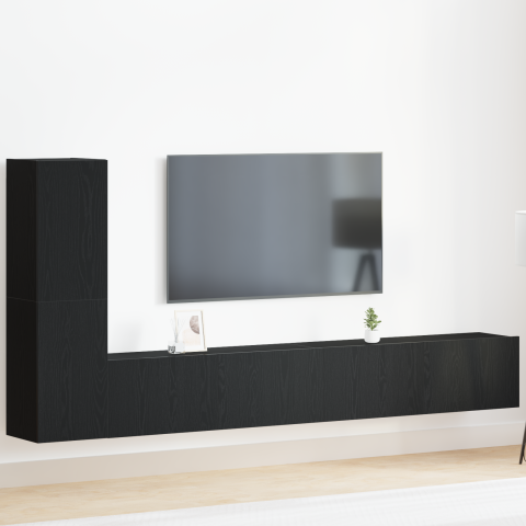 1 kép vidaXL 3 darabos TV szekrény szett felfüggesztett fekete tölgy mérnöki fa