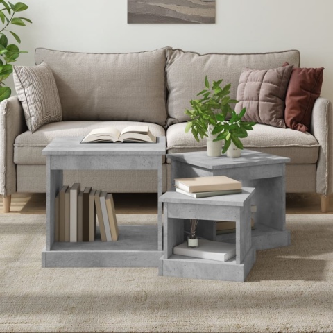 Teljes vidaXL 3 db betonszürke szerelt fa egymásba tolható asztal termékleírás