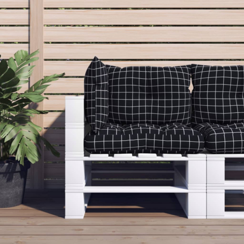 1 kép vidaXL 3 db fekete kockás oxford szövet raklappárna