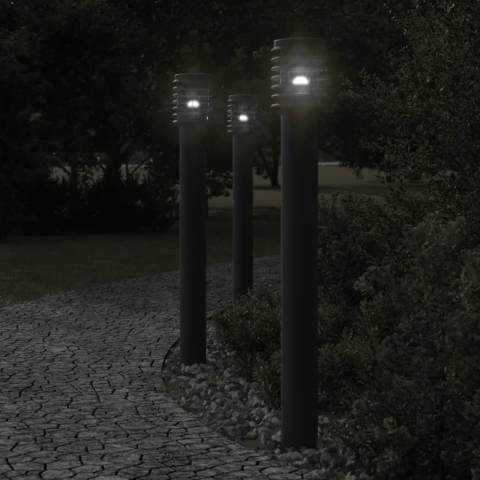 1 kép vidaXL 3 db fekete rozsdamentes acél kültéri állólámpa aljzattal 110cm