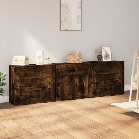 Teljes vidaXL 3 db füstös tölgy szerelt fa tálalószekrény termékleírás