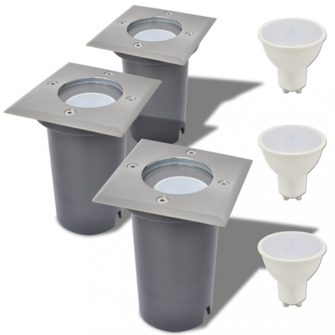 1 kép vidaXL 3 db négyzet alakú, kültéri talajba építhető LED lámpa