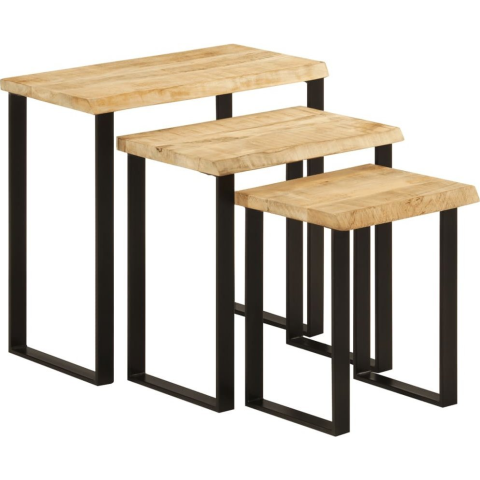 vidaXL 3 db tömör mangófa rakásolható asztal természetes éllel (372762) bútor árgrafikon