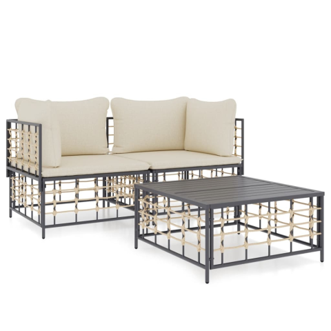 1 kép vidaXL 3 részes antracitszürke polyrattan kerti ülőgarnitúra párnákkal