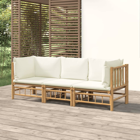 1 kép vidaXL 3 részes bambusz kerti ülőgarnitúra krémfehér párnákkal