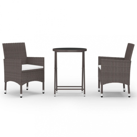 Teljes vidaXL 3 részes barna polyrattan és edzett üveg kerti bisztrószett termékleírás