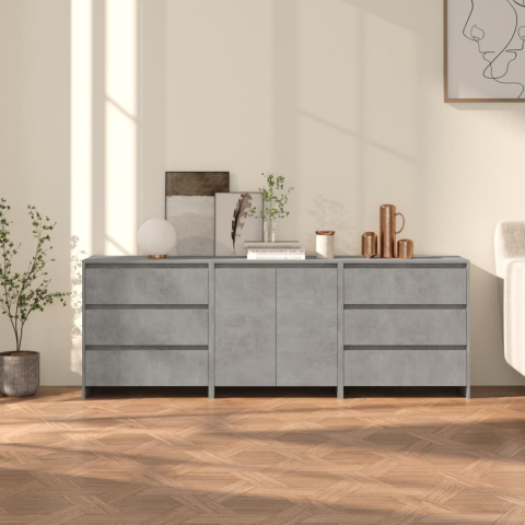 Teljes vidaXL 3 részes betonszürke szerelt fa tálalószekrény termékleírás