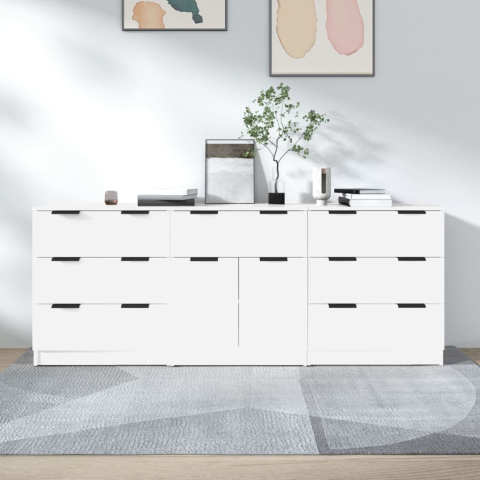 vidaXL 3-részes fehér szerelt fa tálalószekrény bútor termékleírás