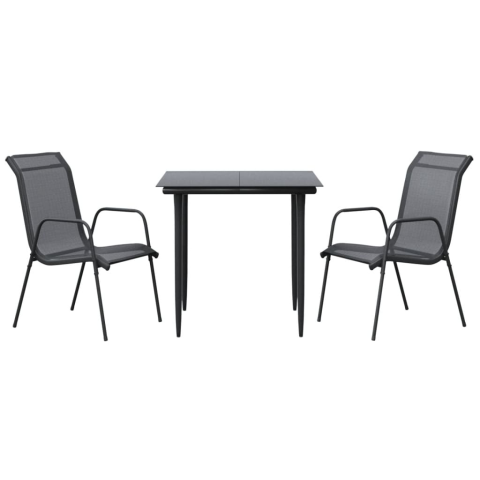 Teljes vidaXL 3 részes fekete acél és textilén kerti étkezőgarnitúra termékleírás