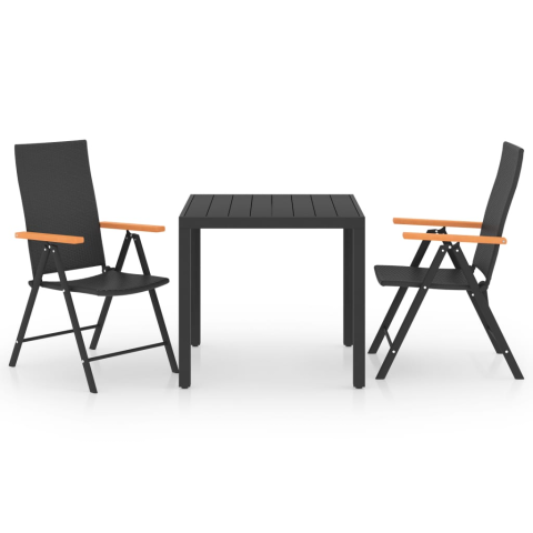 vidaXL 3 részes fekete-barna kerti étkezőgarnitúra (3060082) kerti bútor 1 kép