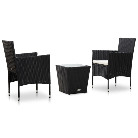 Teljes vidaXL 3-részes fekete polyrattan és edzett üveg bisztrószett termékleírás