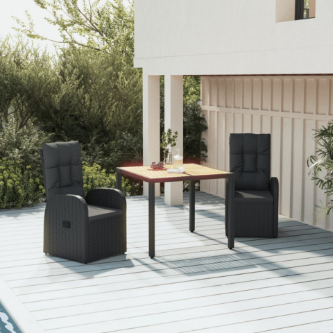 Teljes vidaXL 3 részes fekete polyrattan kerti étkezőgarnitúra párnákkal termékleírás