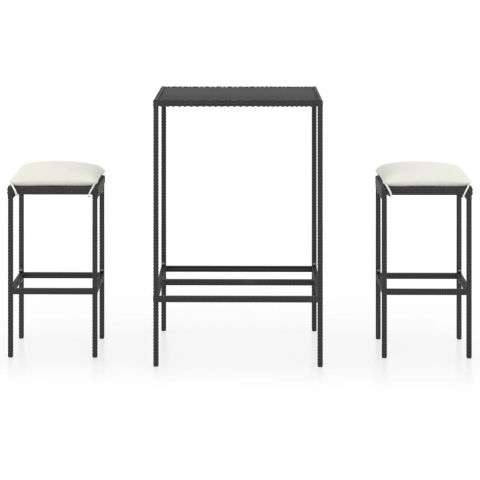 Teljes vidaXL 3 részes fekete polyrattan kültéri bárszett párnákkal termékleírás