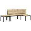 vidaXL 3 részes fekete porszórt acél kerti padszett párnákkal