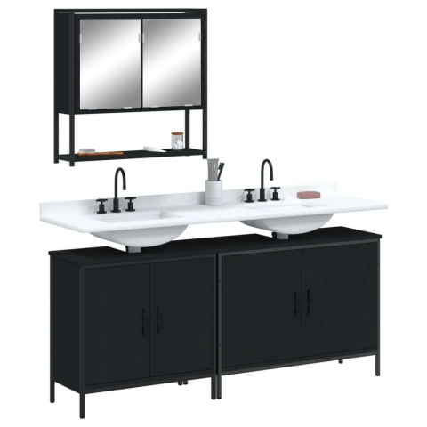 vidaXL 3 részes fekete szerelt fa fürdőszobai bútorszett fürdőszoba bútor 1 kép