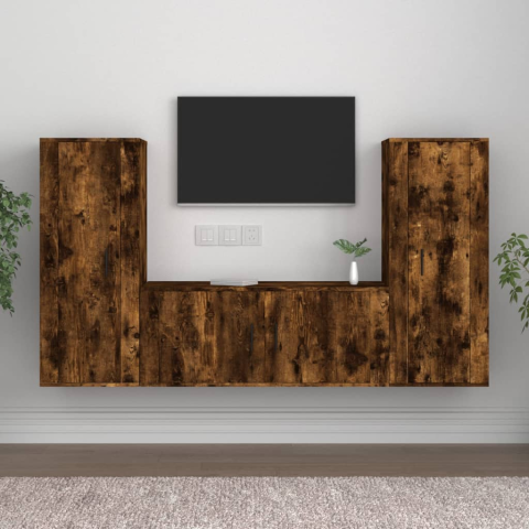 1 kép vidaXL 3 részes füstös tölgy színű szerelt fa TV-szekrényszett