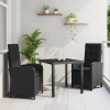 1 kép vidaXL 3 részes kert étkező szett párnákkal, Fekete polirattan