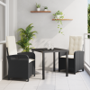 1 kép vidaXL 3 részes kertivacsora szett párnákkal fekete poli rattan