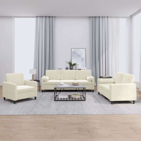 Teljes vidaXL 3 részes krémszínű bársony ülőgarnitúra párnákkal termékleírás