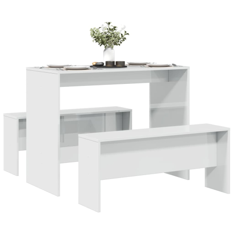 1 kép vidaXL 3 részes magasfényű szerelt fa étkezőasztal és pad szett