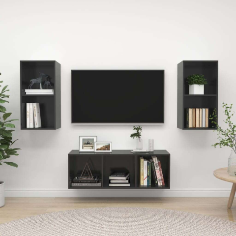 Teljes vidaXL 3 részes magasfényű szürke forgácslap TV-szekrény szett termékleírás