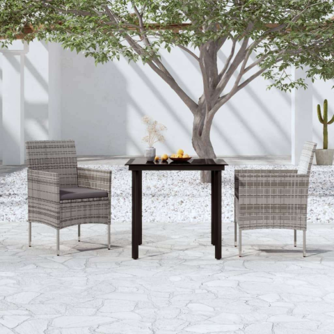 Teljes vidaXL 3 részes szürke és fekete kerti étkezőgarnitúra párnákkal termékleírás