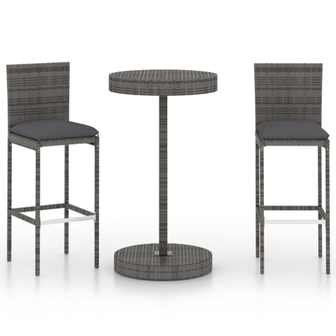 Teljes vidaXL 3 részes szürke polyrattan kerti bárszett párnákkal termékleírás