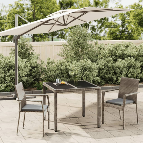 Teljes vidaXL 3 részes szürke polyrattan kerti étkezőgarnitúra párnával termékleírás
