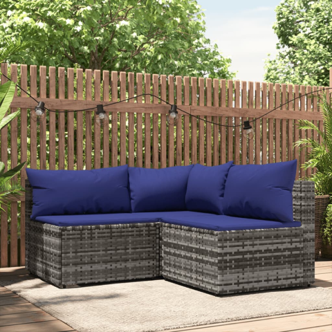 Teljes vidaXL 3 részes szürke polyrattan kerti ülőgarnitúra párnákkal termékleírás