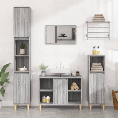 1 kép vidaXL 3 részes szürke sonoma színű szerelt fa fürdőszobai bútorszett