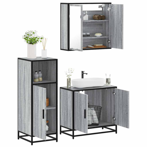 1 kép vidaXL 3 részes szürke sonoma színű szerelt fa fürdőszobai bútorszett