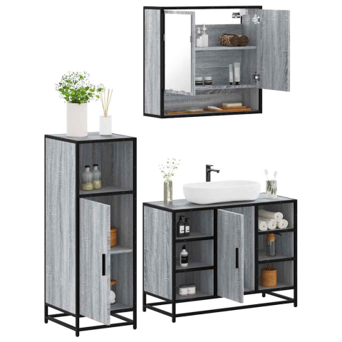 1 kép vidaXL 3 részes szürke sonoma színű szerelt fa fürdőszobai bútorszett