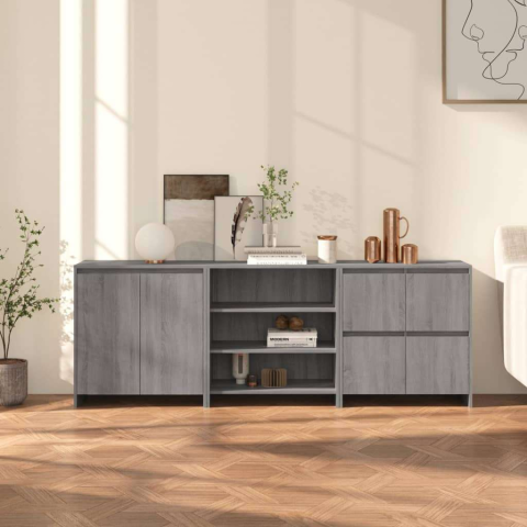 Teljes vidaXL 3 részes szürke sonoma színű szerelt fa tálalószekrény termékleírás
