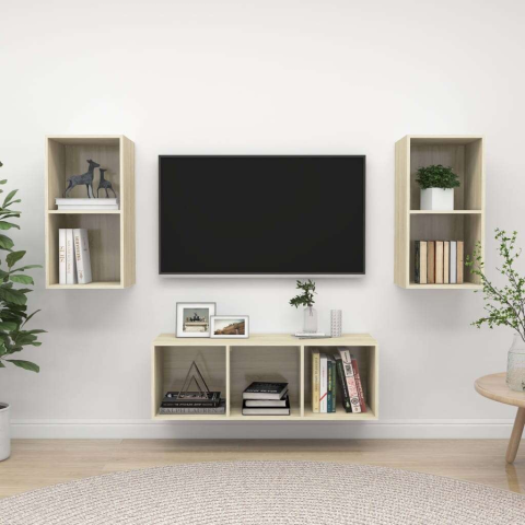 Teljes vidaXL 3 részes tölgyszínű forgácslap TV-szekrény szett termékleírás