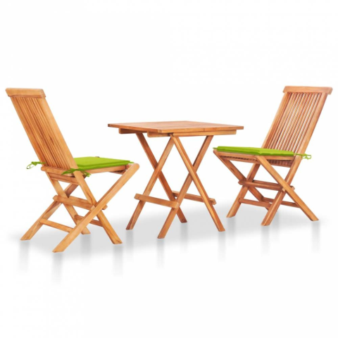 Teljes vidaXL 3 részes tömör tíkfa bisztrószett élénkzöld párnákkal termékleírás