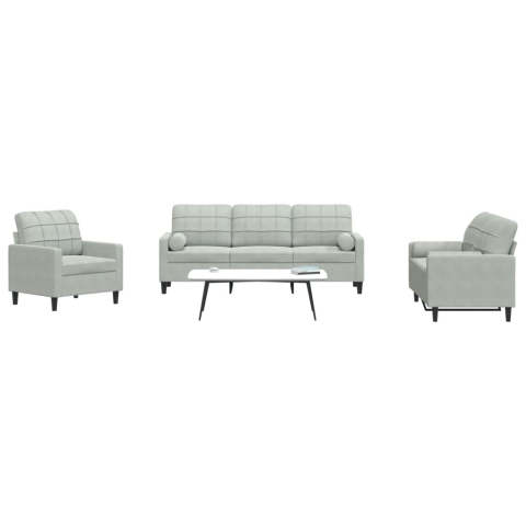 1 kép vidaXL 3 részes világosszürke bársony ülőgarnitúra párnákkal