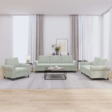 Teljes vidaXL 3 részes világosszürke bársony ülőgarnitúra párnákkal termékleírás