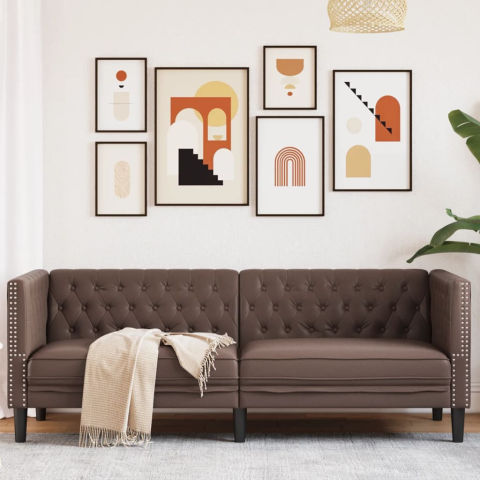vidaXL 3 személyes barna műbőr Chesterfield kanapé