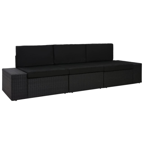 Teljes vidaXL 3 személyes fekete elemes polyrattan kanapé termékleírás