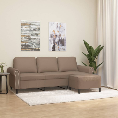 vidaXL 3 személyes kávészínű műbőr kanapé lábtartóval 180 cm bútor termékleírás