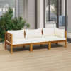 Teljes vidaXL 3 személyes tömör akácfa kerti kanapé krémszínű párnával termékleírás