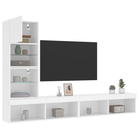 1 kép vidaXL 4 darab fehér szerelt fa fali TV-bútor LED-del